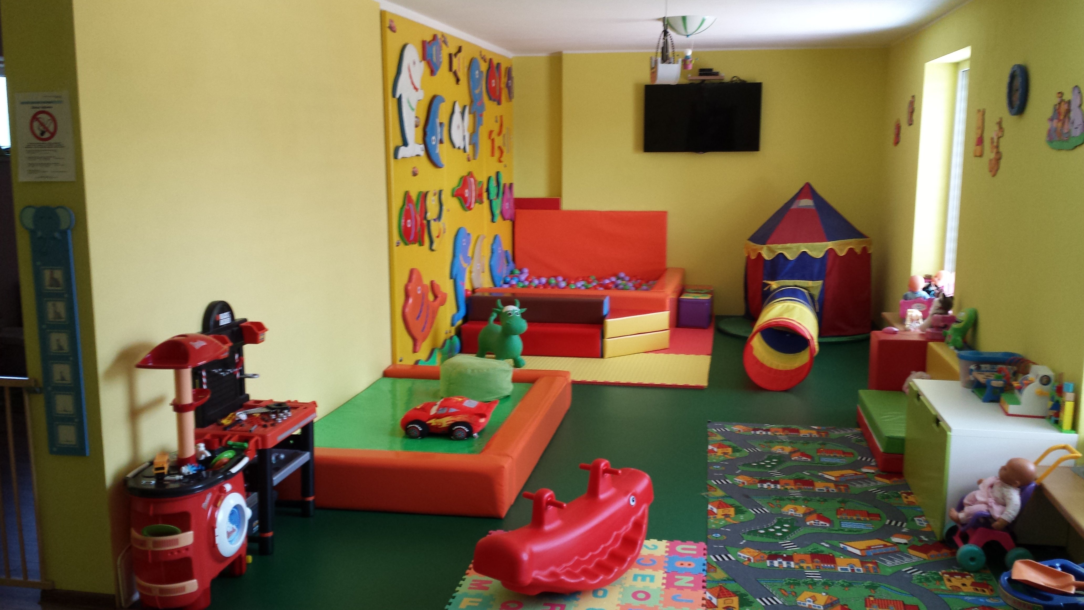 Deti od 1-2 rokov určite v sprievode s rodičmi sa môžu hrať s autíčkami alebo bábikami, staršie pod dozorom rodičov alebo opatrovateľky môžu čítať, skákať do guľôčok, hrať spoločenské hry, ale aj pre tých čo nemajú doma PlayStation 3, je možné sa zahrať. Vieme zabezpečiť aj priestor na stolný tenis. Máme aj vonkajšie ihrisko s preliezkami a kolotočom.